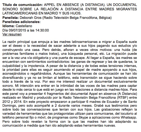 Nuestra pieza sonora se parece más bien a un « micro-trottoir » (una encuesta), pero no pasa nada ! El proceso era lo interesante y todas las conversaciones que han puntuado este trabajo colectivo. Es importante también darse cuenta que a veces hay un hueco grande entre la idea, la intención y el resultado final. De allí la importancia de pasar tiepo en el terreno para abordar un tema en profundidad.